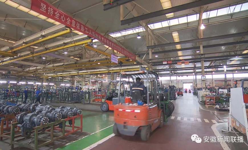 我現(xiàn)在是在安徽叉車集團(tuán)的高端新能源叉車生產(chǎn)車間,從我身后的這個(gè)車間排產(chǎn)表上可以看到,這個(gè)車間生產(chǎn)出的叉車不僅會(huì)銷往遼寧、上海、長(zhǎng)沙等國(guó)內(nèi)的多個(gè)城市,還會(huì)出口到韓國(guó)、俄羅斯、匈牙利等世界多個(gè)國(guó)家,今年以來,這條產(chǎn)線上產(chǎn)出的叉車量已經(jīng)同比增長(zhǎng)了7成。